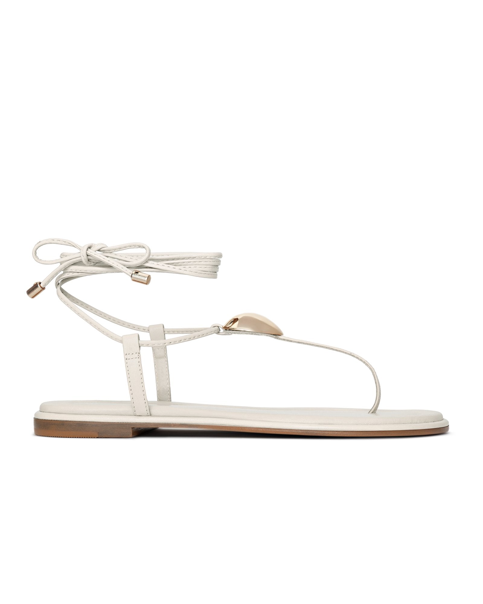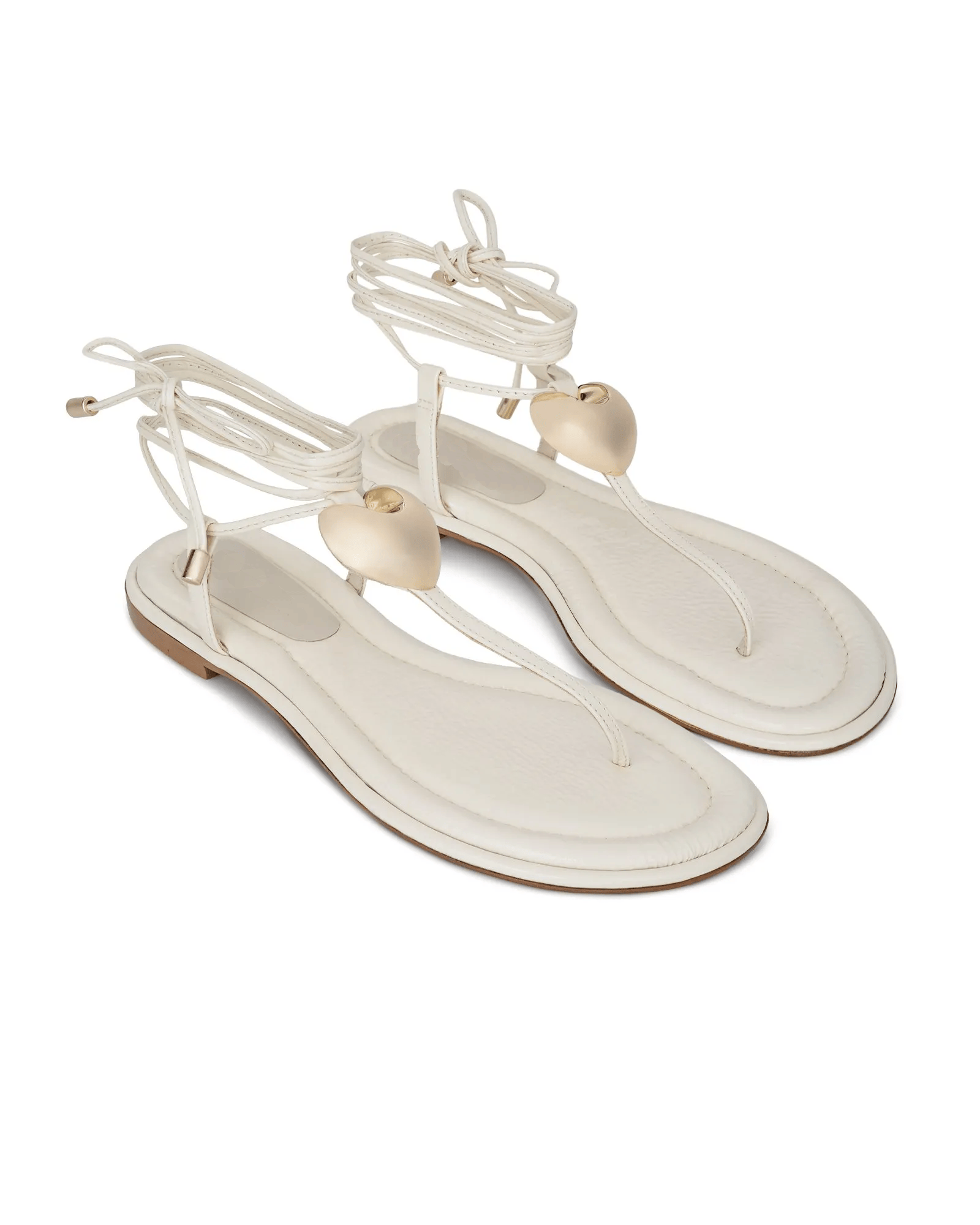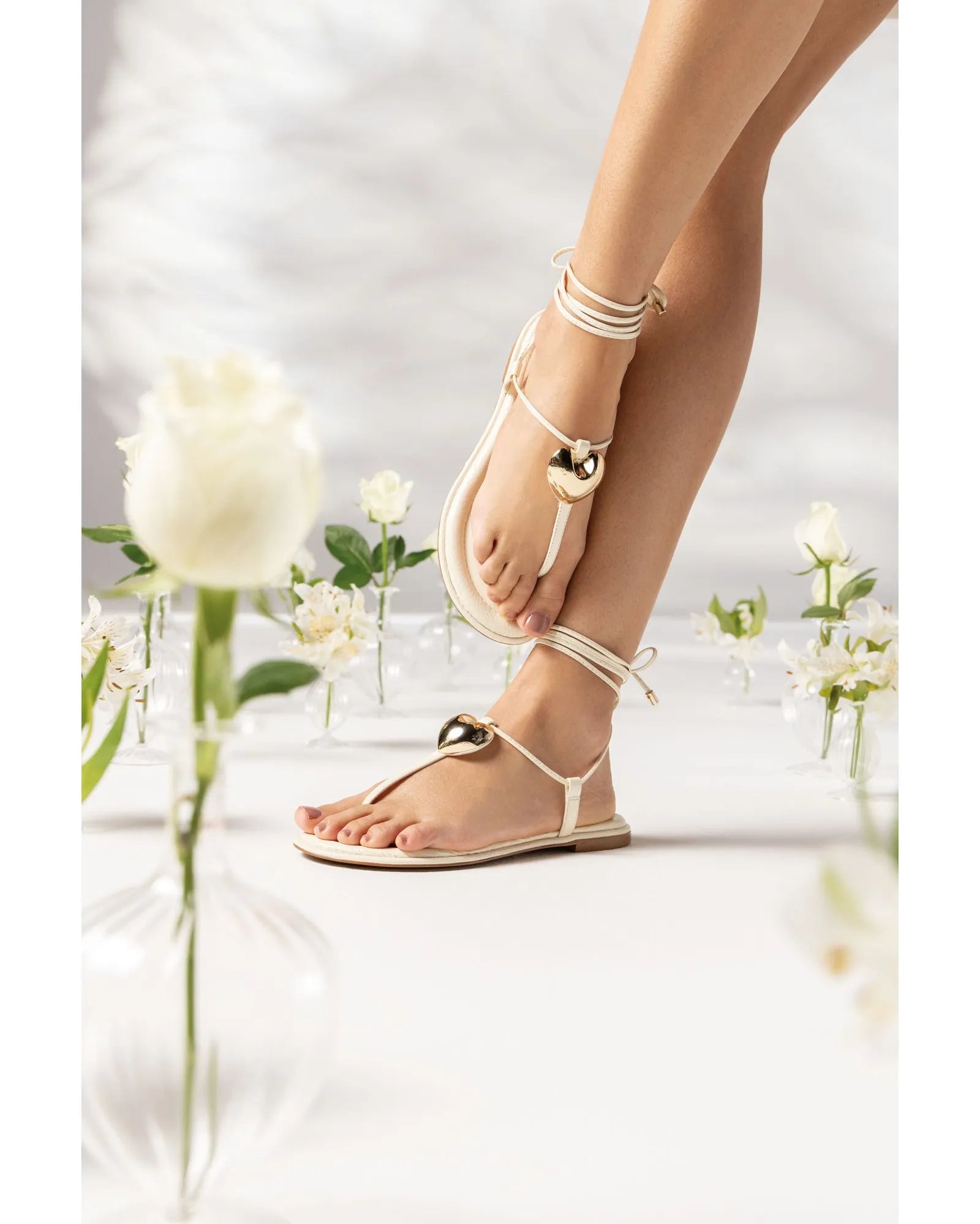 Timeless romance meets effortless elegance in the Sweetheart Bond Flat Sandal, a delicate expression of modern femininity. Crafted from luxurious soft glove leather, it features a minimalist silhouette adorned with a golden heart detail that adds a subtle touch of charm and sophistication. With adjustable ankle-tie straps and a lightweight sole, it offers all-day comfort and style — perfect for warm days, seaside escapes, and chic summer moments.