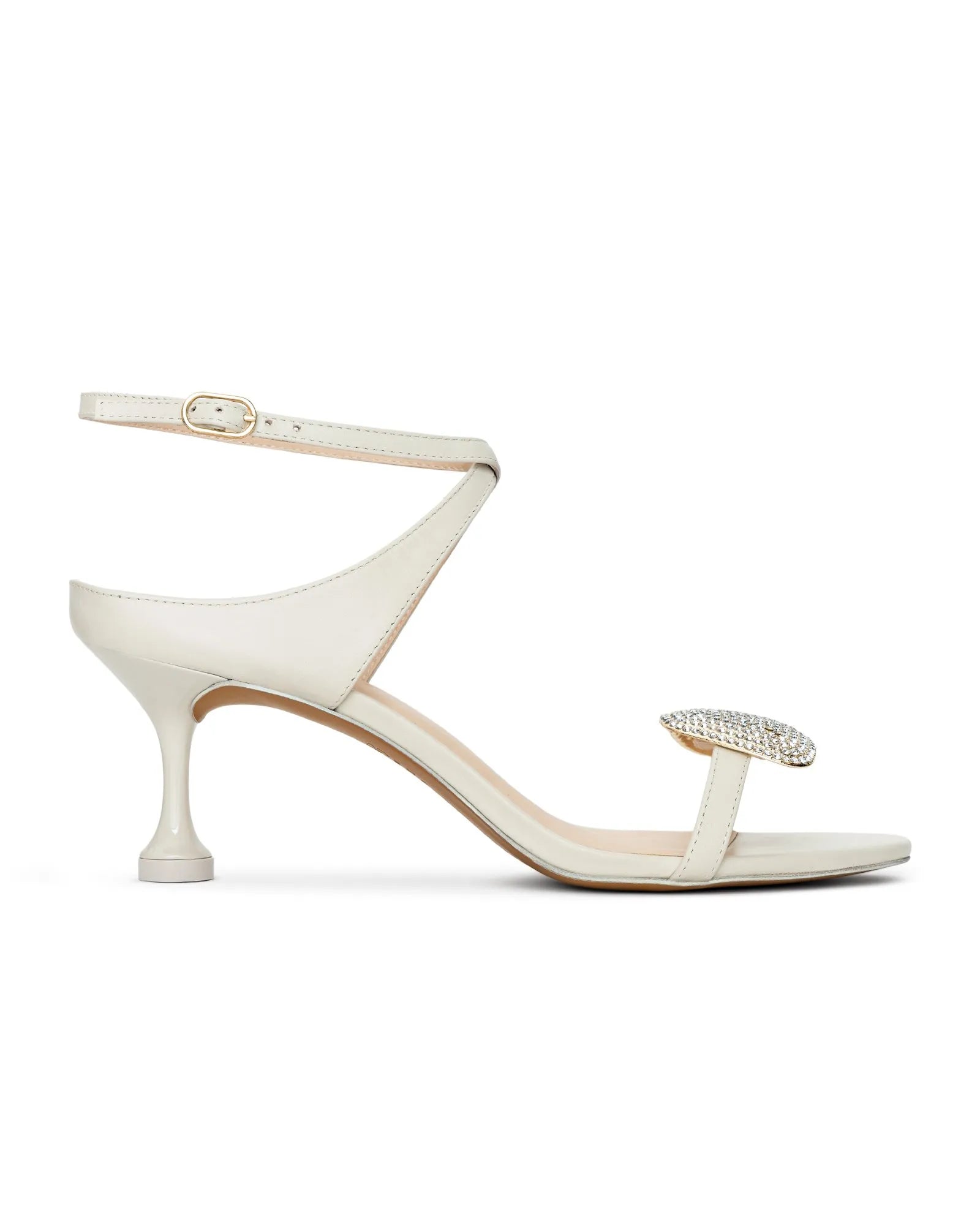 Radiant elegance and timeless sophistication define the Celestial Charm Sandal, a piece made to shine in life’s most special moments. Crafted from soft napa leather in an elegant brie tone, it features a delicate silhouette, slender ankle strap, and a graceful kitten heel for effortless comfort. The crystal-embellished accent adds a touch of brilliance, blending modern simplicity with timeless allure — perfect for weddings, soirées, and elegant evenings.
