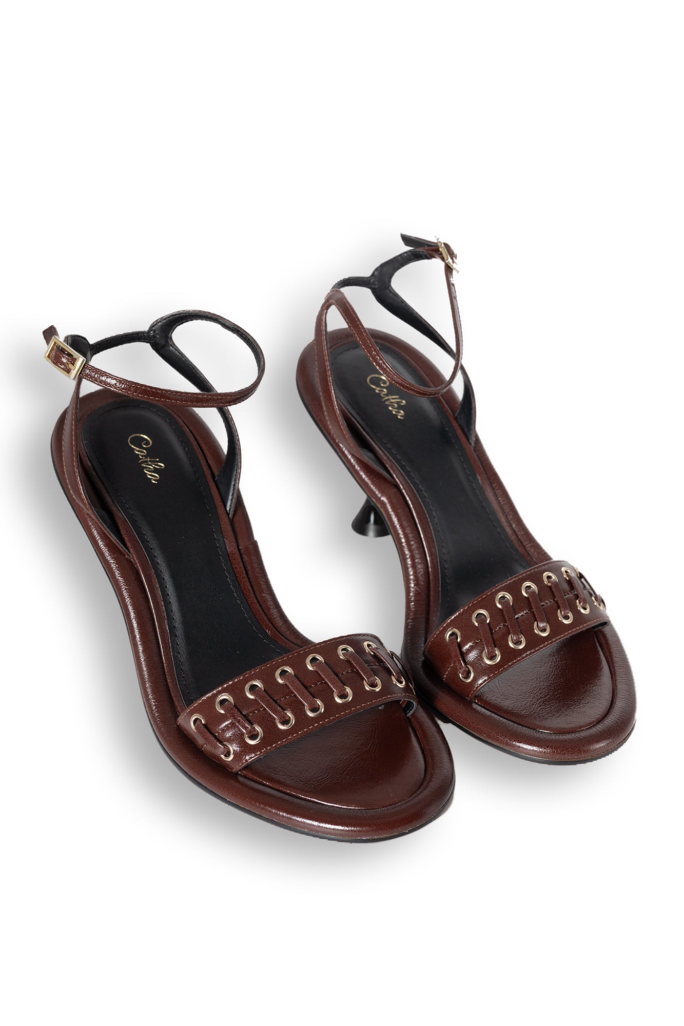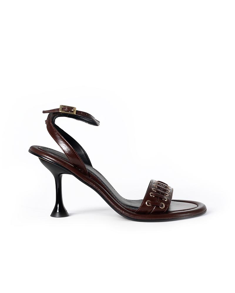 Refined, bold, and effortlessly chic — the Espresso Charm Sandal embodies modern sophistication. Crafted from luxurious espresso-brown leather, it features a minimalist silhouette with subtle eyelet and lace detailing for a touch of edge. The sculpted hourglass heel adds height and elegance, while the slim ankle strap ensures a secure and graceful fit. Perfect from day to night, it’s the definition of timeless allure.