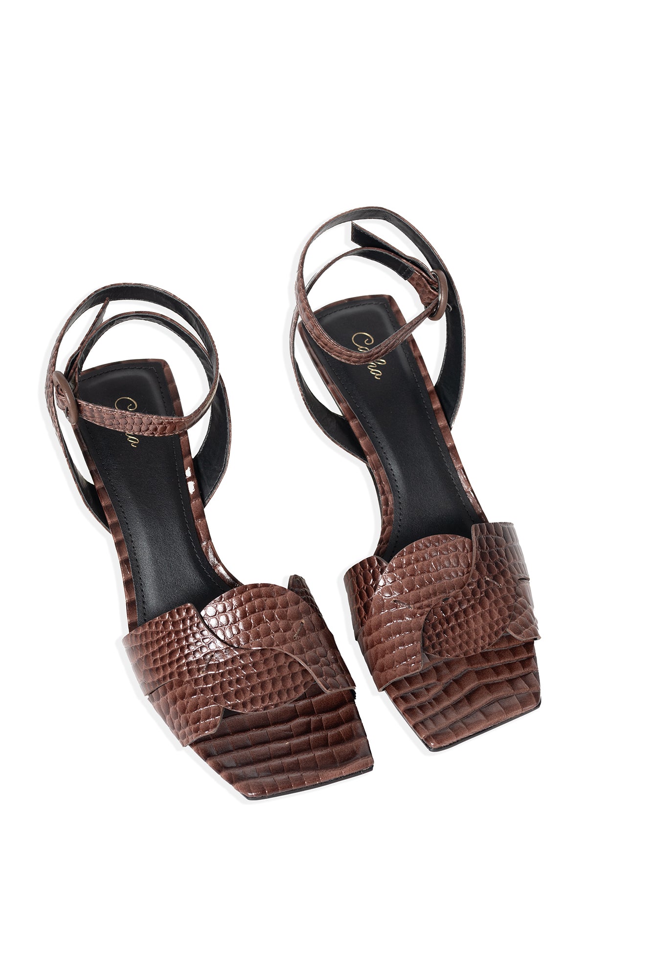 Modern elegance meets sculptural design in the Mocha Edge Sandal, a bold statement for women who embrace sophistication with edge. Crafted from luxurious croc-effect leather, it features a metallic sculpted wedge heel that blends artful architecture with refined femininity. The square-toe silhouette and minimal ankle strap ensure both comfort and modern allure. Available in mocha brown and camel, it transitions effortlessly from day to night with timeless appeal.