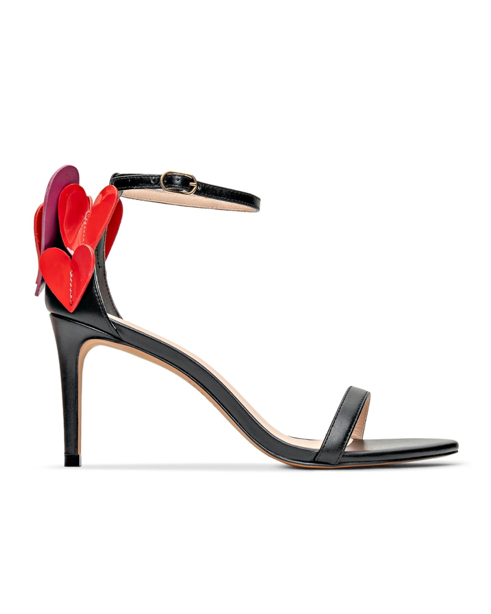 Fall in love with every step in the Amour Bloom Sandal, where timeless elegance meets playful romance. Crafted from premium black napa leather, it features a minimalist front strap, a delicate ankle buckle, and a refined silhouette that exudes femininity. The highlight — a bold 3D heart appliqué in red and purple tones — adds a touch of passion and whimsy, making this design unforgettable. Elegant yet expressive, it’s a true statement of love and artistry.