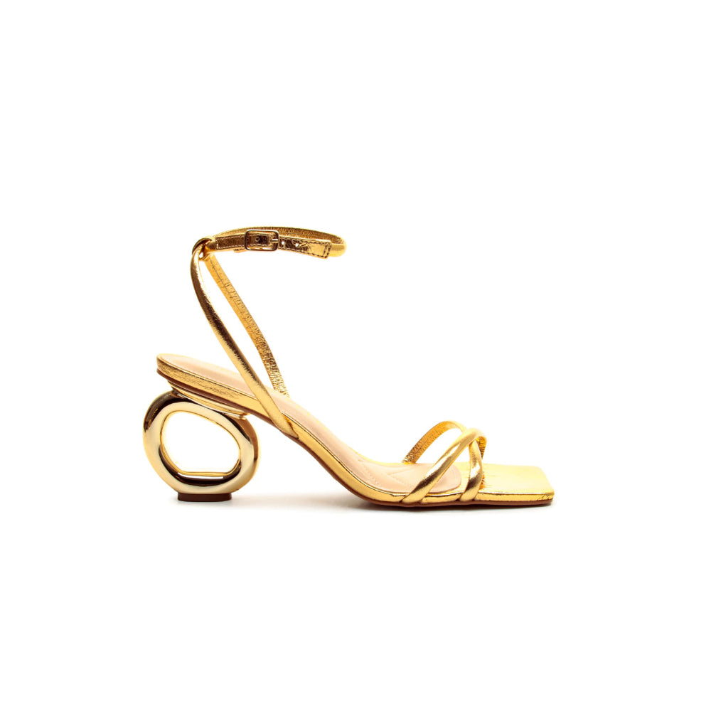 Chic, sculptural, and undeniably striking — the Solara Orbit Sandal elevates modern elegance with an artistic edge. Crafted in radiant metallic leather, it features delicate, slender straps that gracefully frame the foot, creating a refined yet contemporary silhouette. The standout spherical sculpted heel adds a bold architectural statement while maintaining balance and comfort. Designed to transition seamlessly from day to night, Solara Orbit brings effortless sophistication to any look with a touch of luminous glamour.